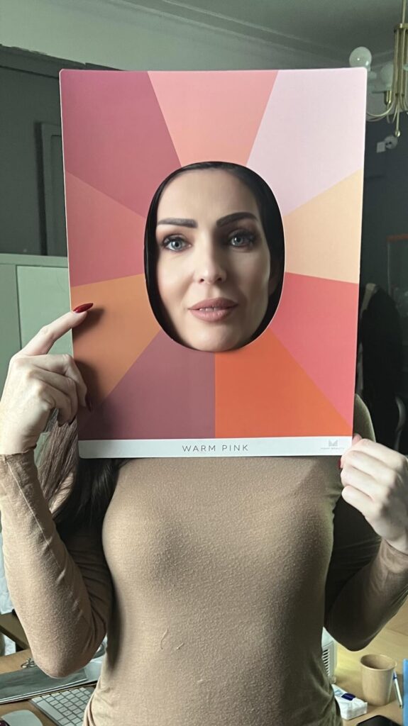 Podczas spotkania sprawdzam, w jakich barwach Twoja twarz wygląda najlepiej. Używam do tego specjalnych chust i światła dziennego – dzięki temu szybko widzisz różnicę „przed i po”. To naprawdę działa i często budzi efekt WOW!