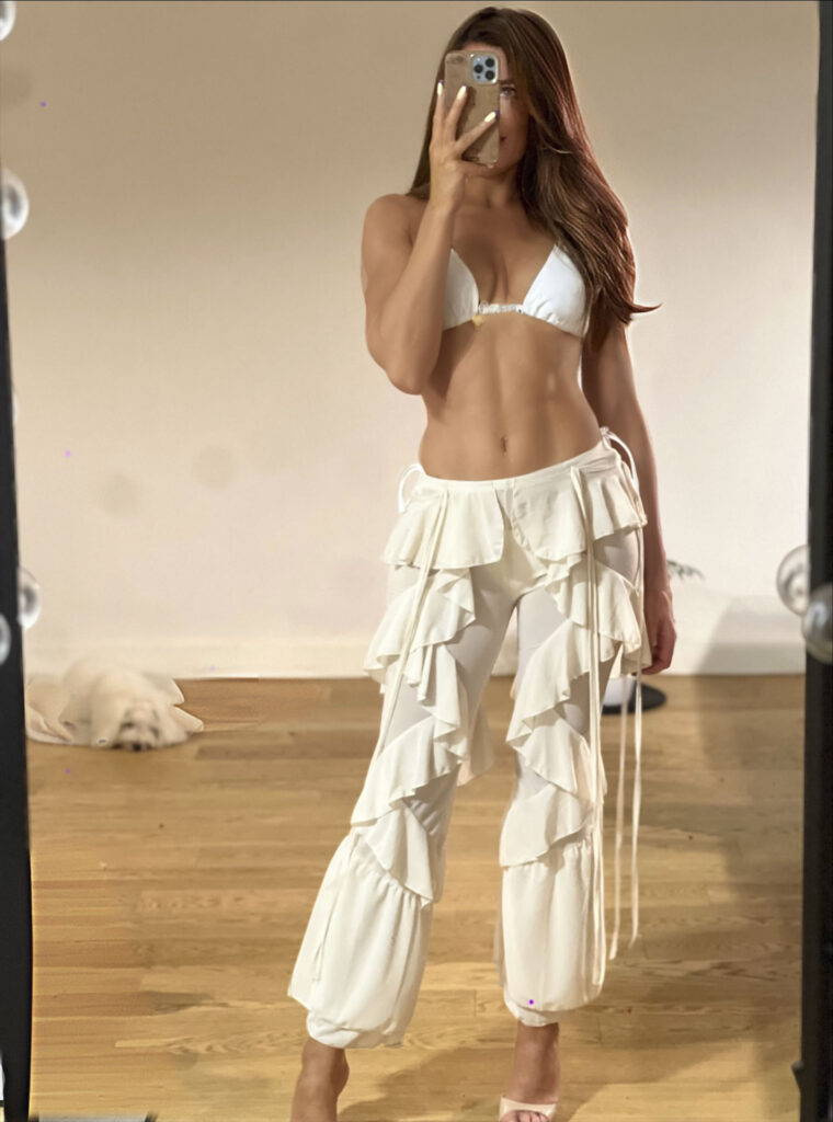 Takie spodnie same w sobie są mocnym akcentem. dlatego najlepiej łączyć je z prosta górą -np. bikini, gładkim topem czy body. Do tego sandałki na obcasie albo espadryle i już masz look rodem z Ibizy. Jeśli chcesz nadać całości bardziej elegancki charakter – dorzuć marynarkę typu oversize i złote dodatki.